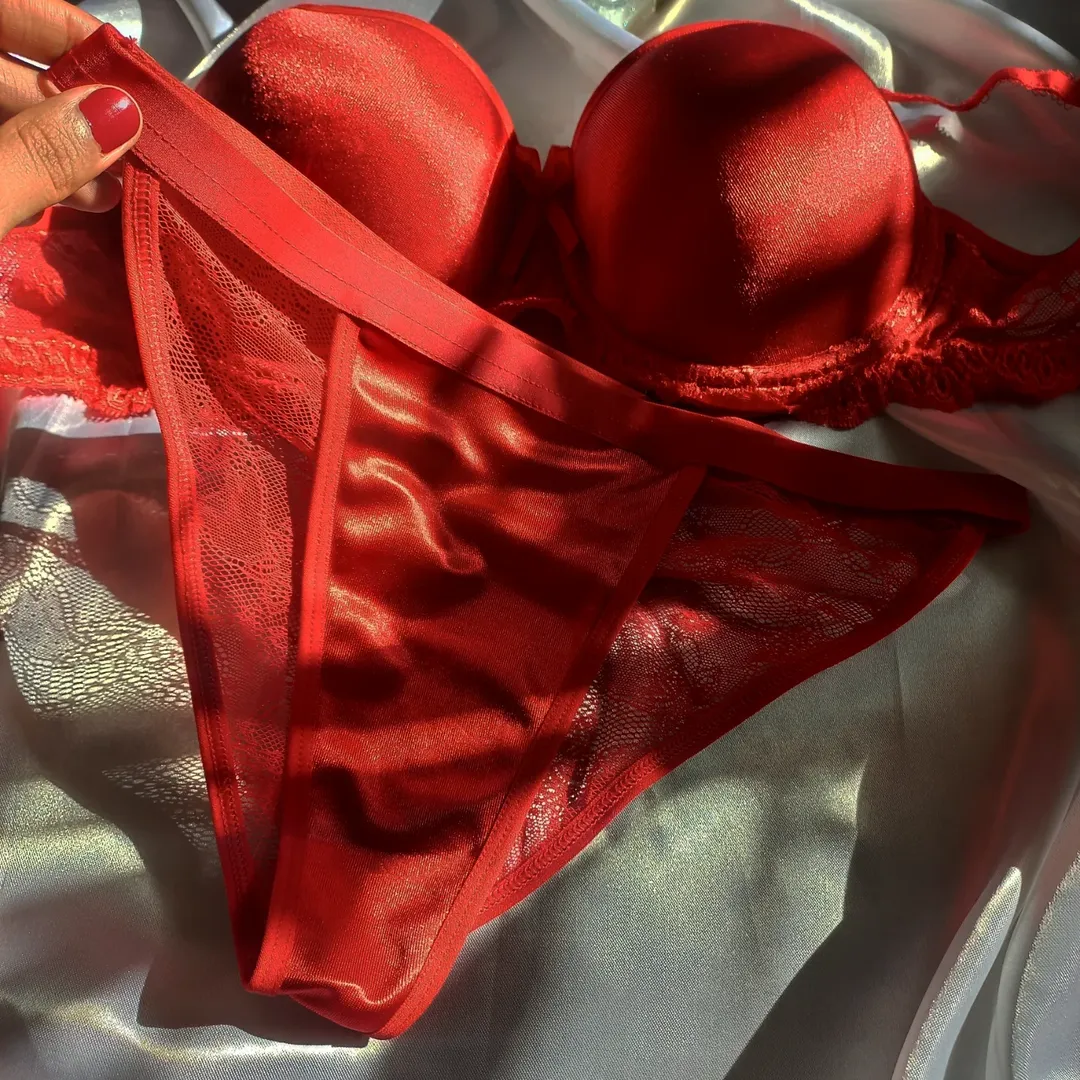 ست سوتین شورت اسفنجی ساتن با دستک گیپور